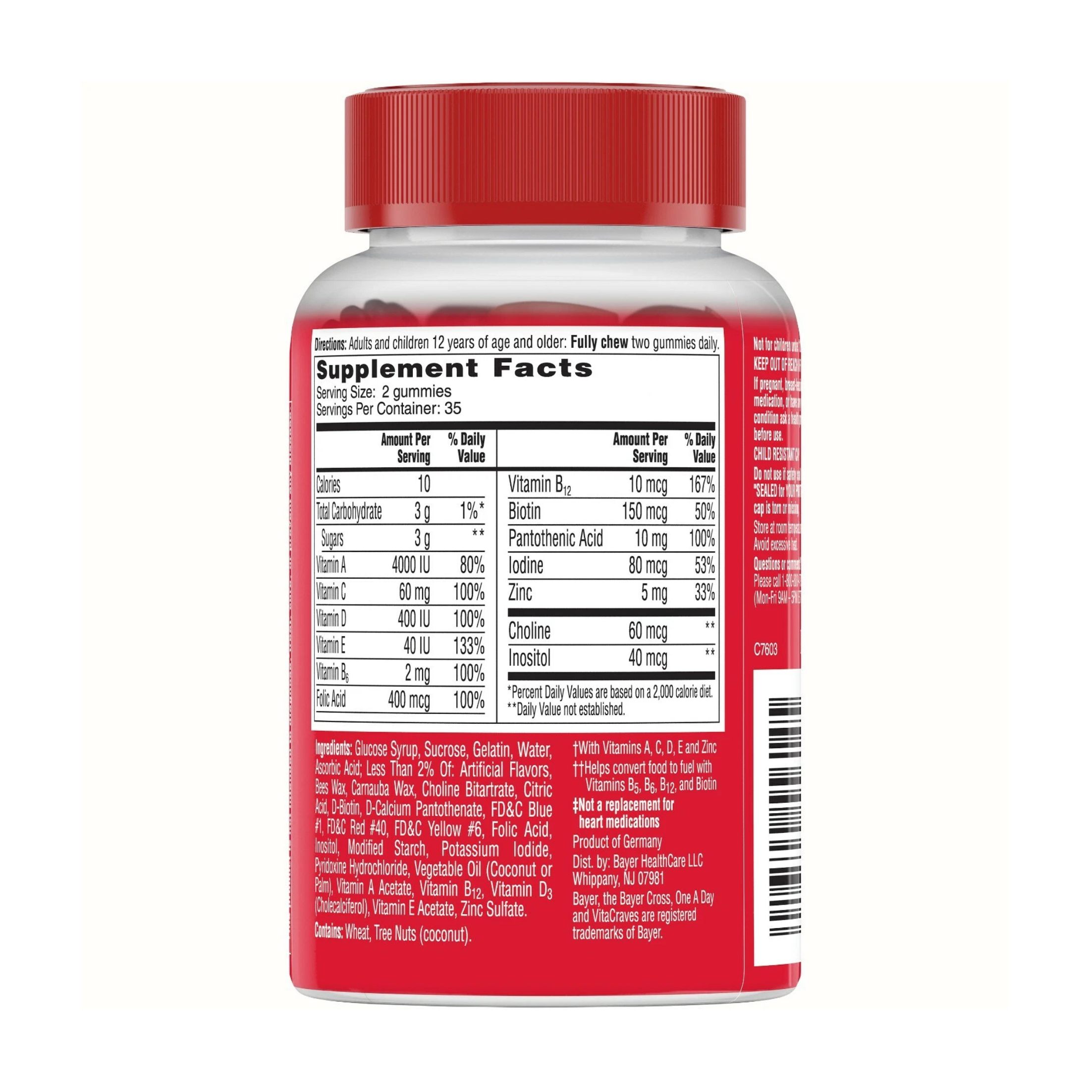 Marketing Description : One A Day® Adult Vitacraves® Multi Gummies. Bayer. Multivitamin/multimineral Supplement. Artificially Flavored.